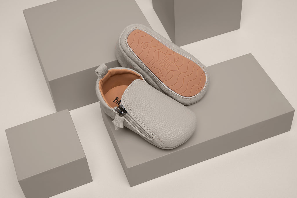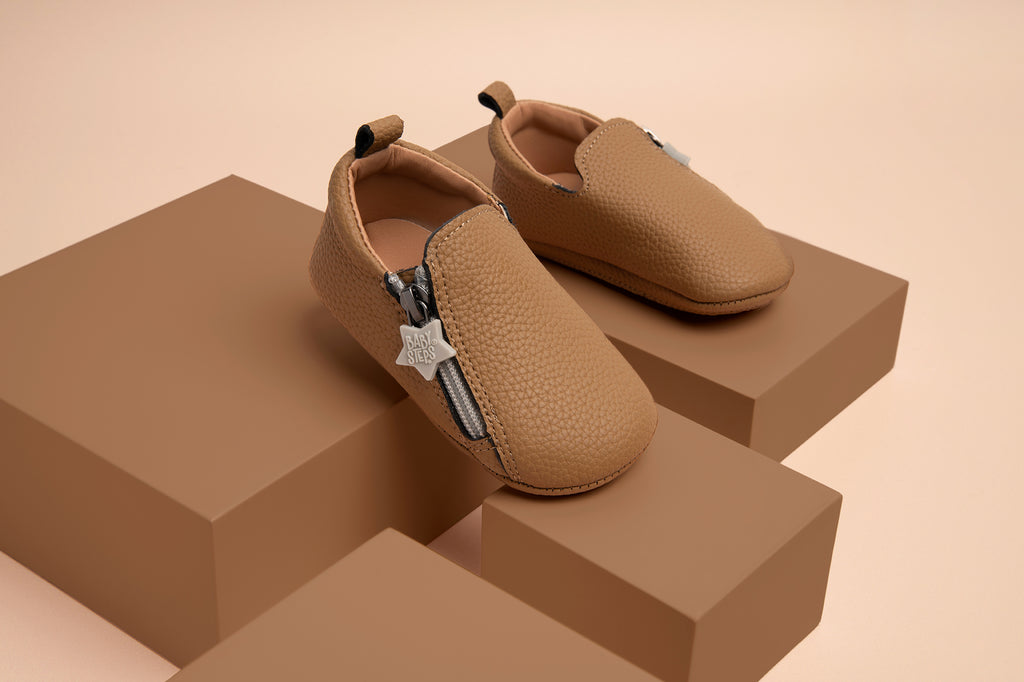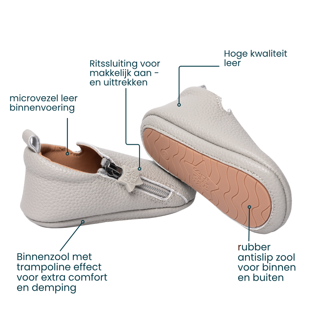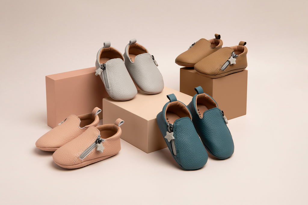 Leren babyslofjes – duurzaam, zacht en ideaal voor dagelijks gebruik.