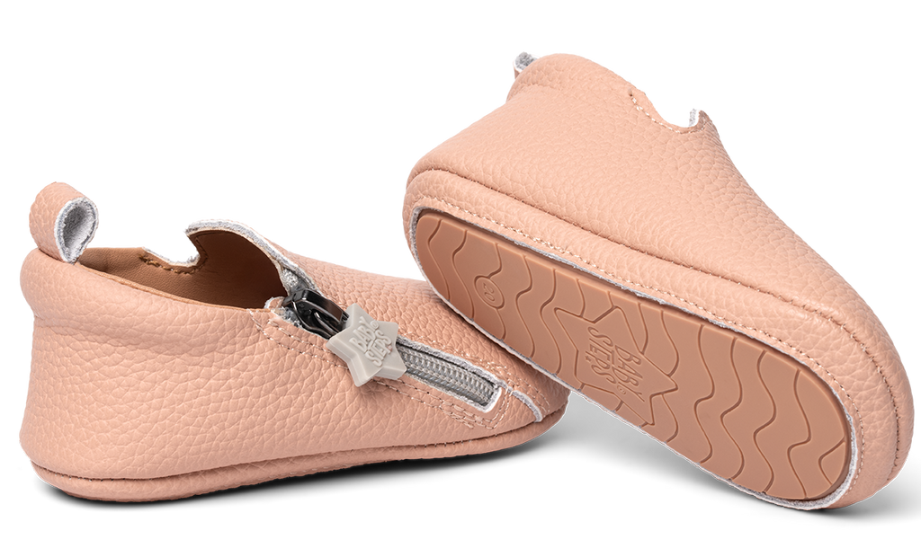 De ritssluiting vergemakkelijkt het aan- en uittrekken van de schoentjes. De ritspull, in de vorm van een ster, geeft een speels accent, en is qua formaat perfect afgestemd op de vingertoppen van een volwassen hand.