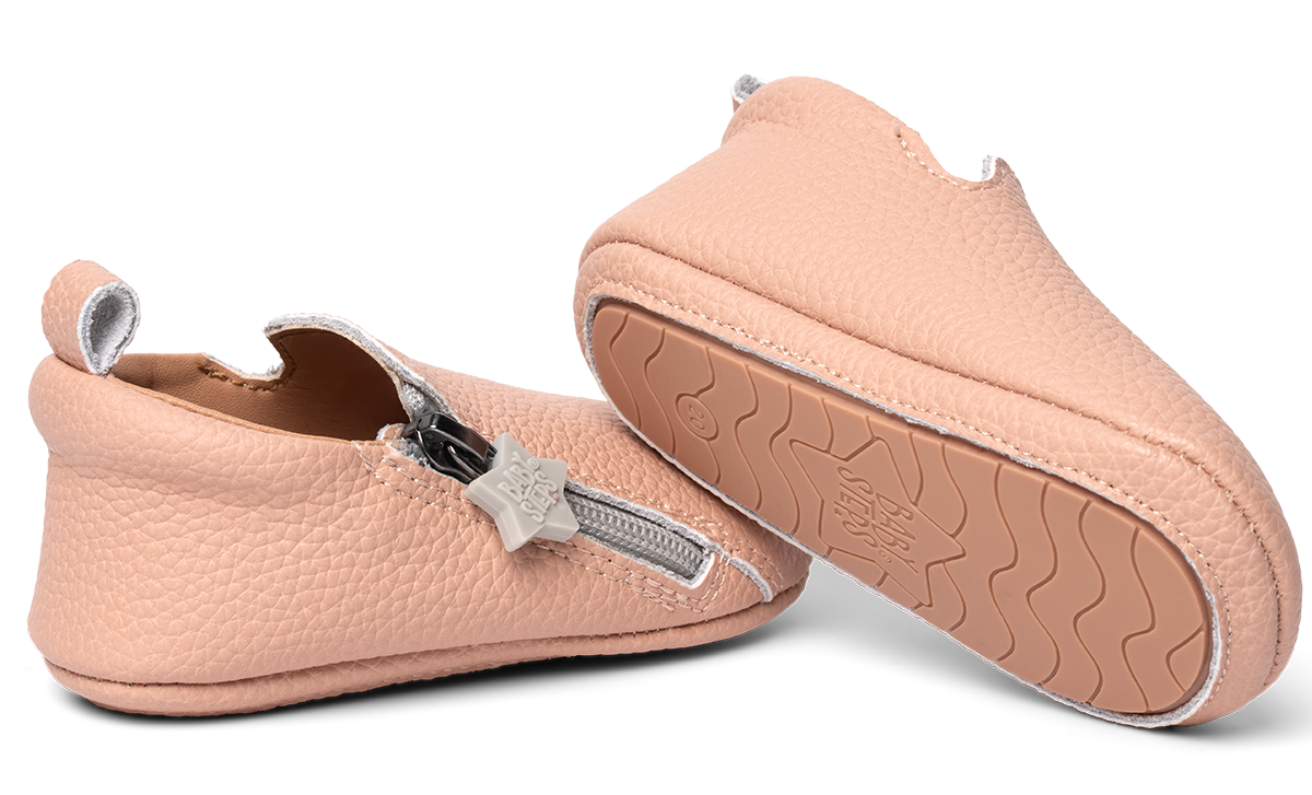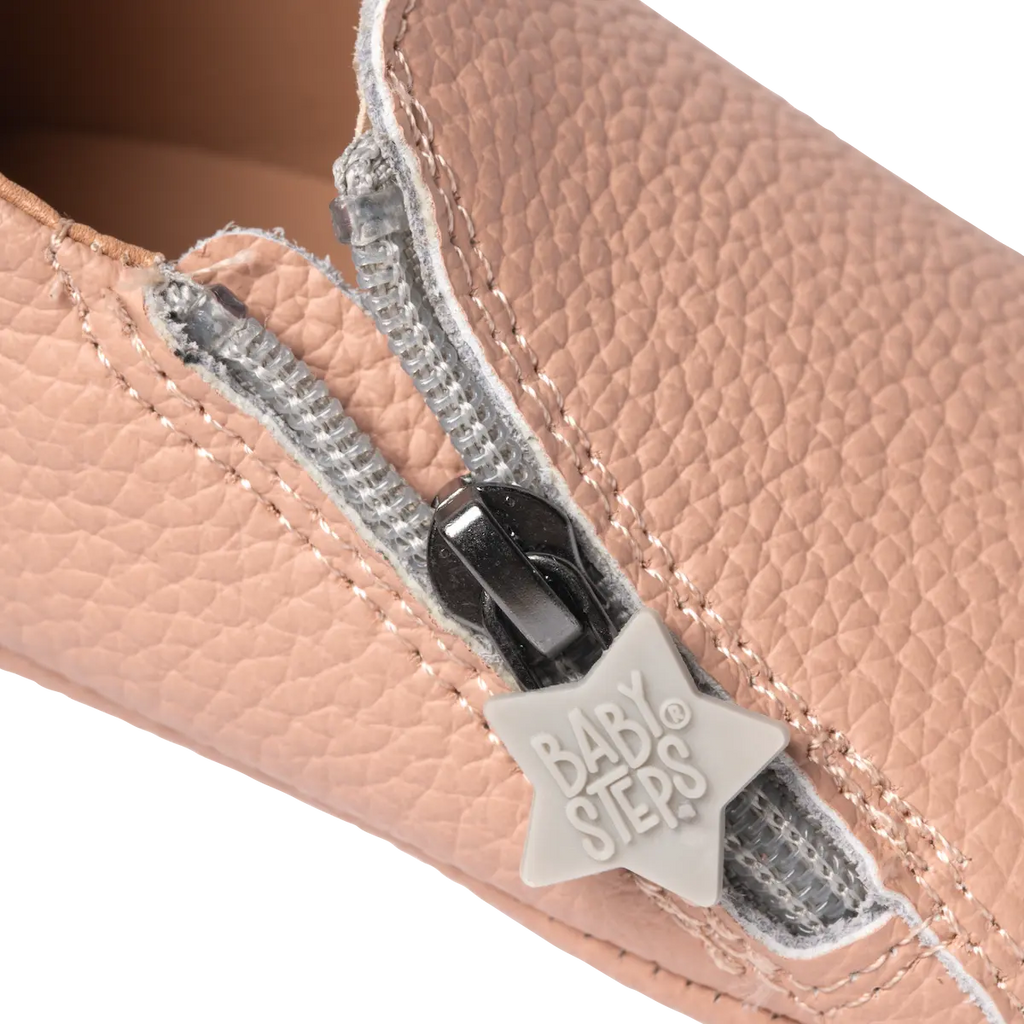 De ritssluiting vergemakkelijkt het aan- en uittrekken van de schoentjes. De ritspull, in de vorm van een ster, geeft een speels accent, en is qua formaat perfect afgestemd op de vingertoppen van een volwassen hand.